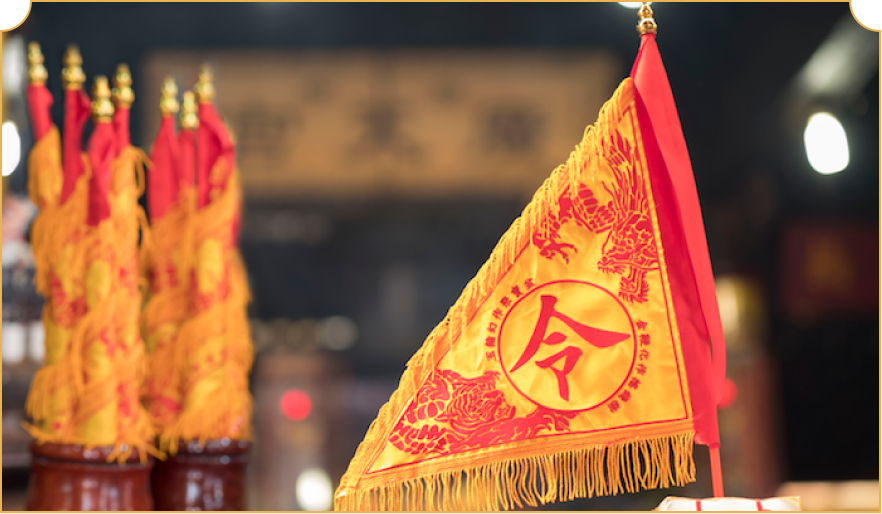 令旗代表財神爺派遣兵馬親自鎮守。請回令旗,即代表您的處所受武財神法力管轄,能招財、鎮宅、擋煞。
