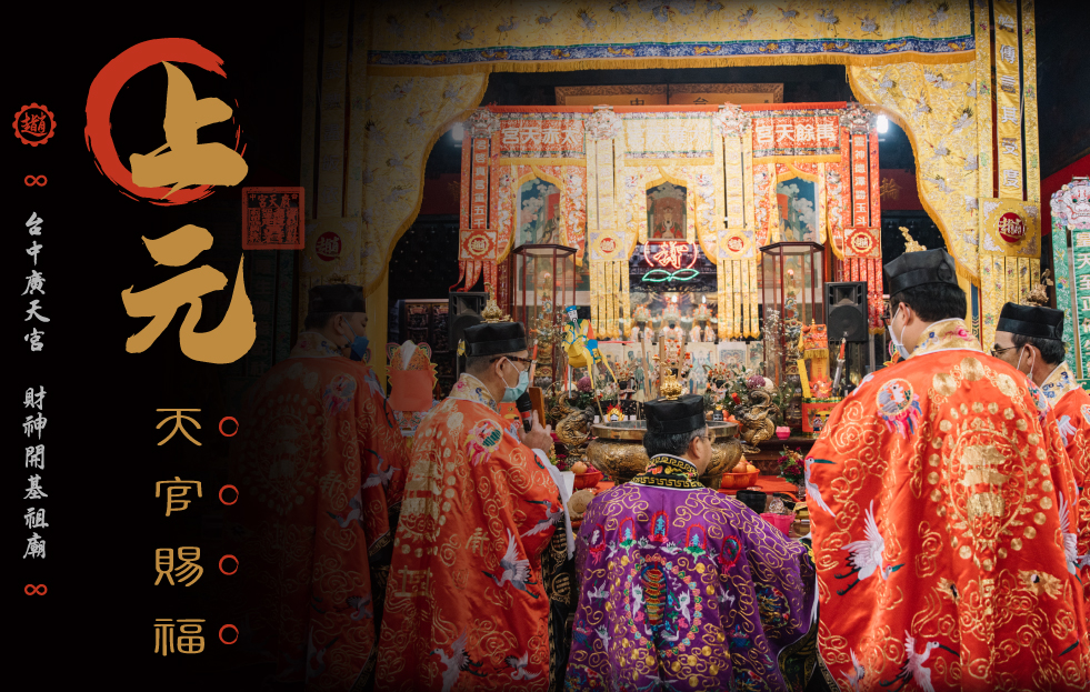 財神爺趙公明記載三界功與過,為此,台中廣天宮特別舉辦「上元節 天官賜福大法會」恭請財神爺 趙公明開壇演化,讓參加安奉年度斗燈的信眾,可以祈求一整年的平安順遂、趨吉避凶