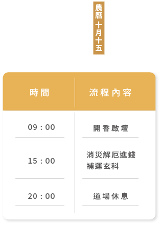 上元節[祈安點燈啟斗奉安太歲法會]固定於農曆正月十五天官大帝聖誕日舉行